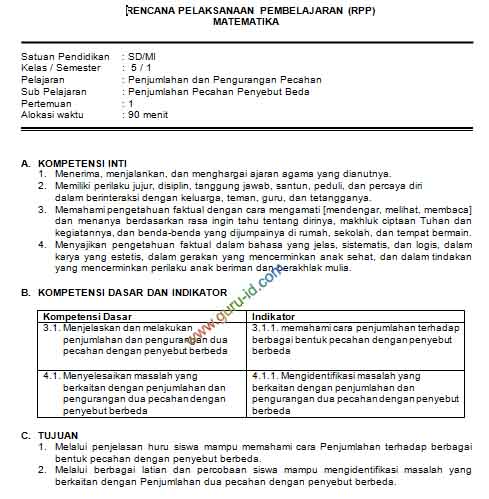 Rpp Menjumlahkan Dan Mengurangkan Pecahan Kurikulum 2013