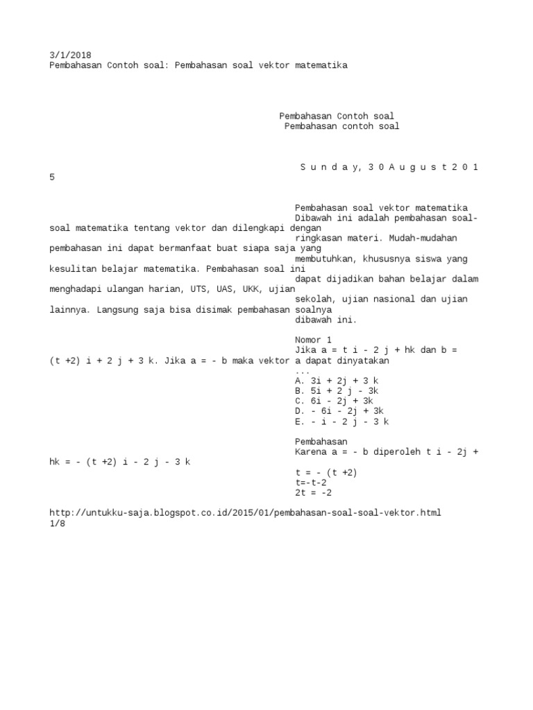 Soal Vektor Matematika Dan Kunci Jawaban 2019