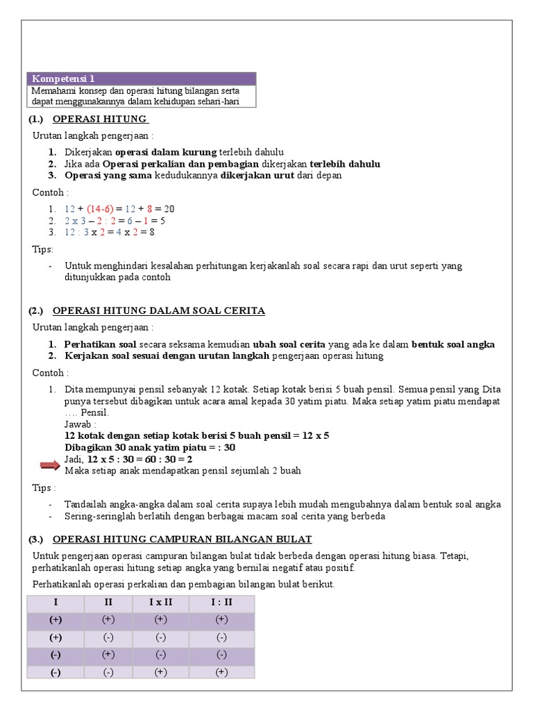 Ringkasan Materi Dan Contoh Soal Smp Operasi Hitung