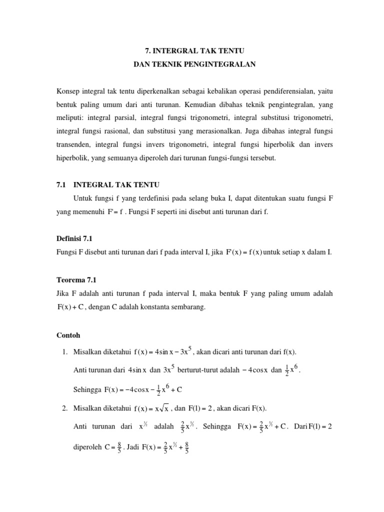 Rangkuman Dan Contoh Soal Teknik Pengintegralan