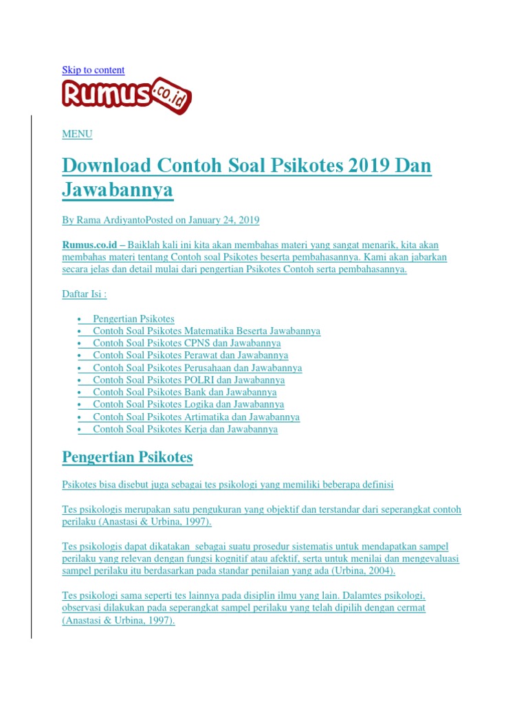 Pdf Contoh Soal Psikotes Psikologi Melamar Kerja Dan