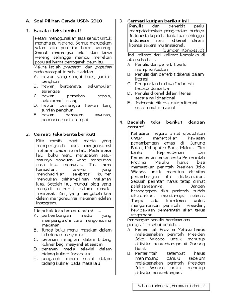50 Soal Latihan Usbn Bahasa Indonesia 2018 Doc Pdf Info