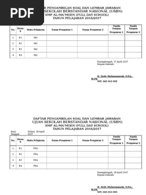 Daftar Pengambilan Ljk Usbn 2016 2017