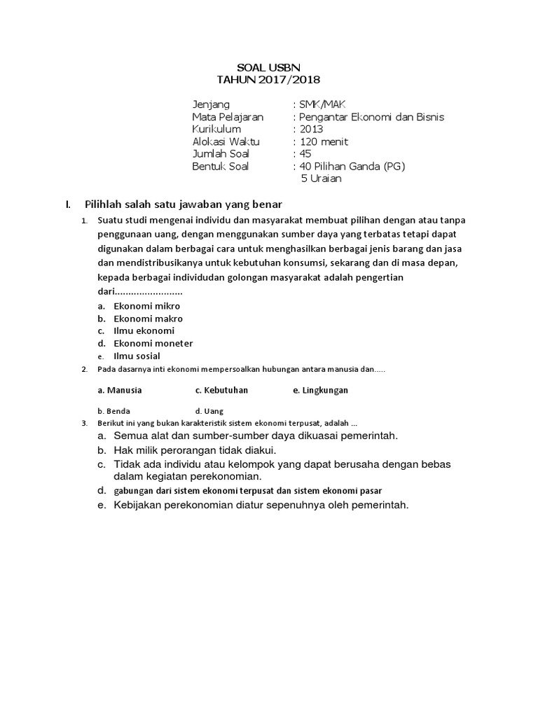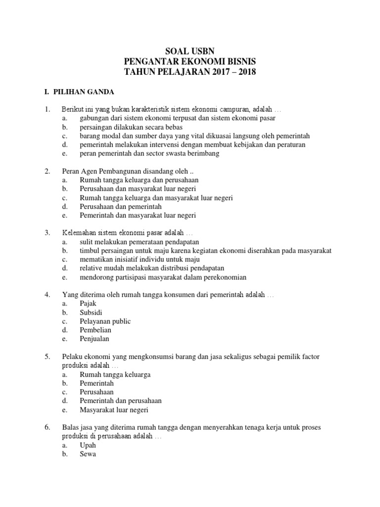 Contoh Soal Dan Jawaban Usbn Pengantar Ekonomi Dan Bisnis