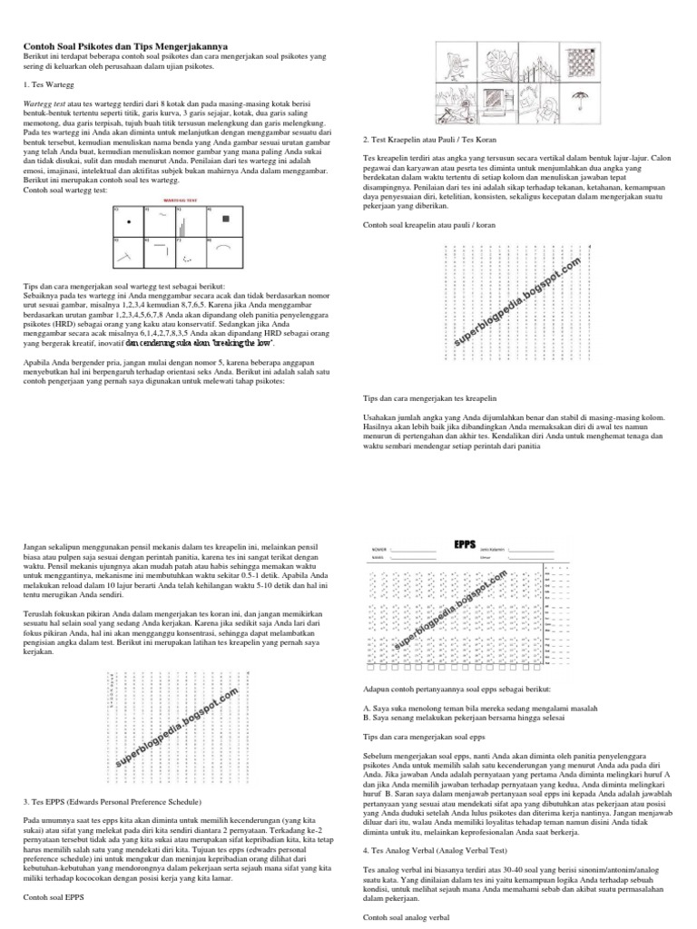 Contoh Soal Psikotes Kerja Dan Jawaban Pdf Latihanpsikotes
