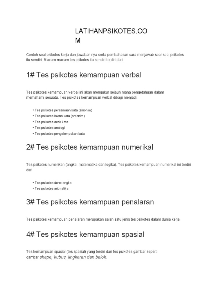 Pdf Contoh Soal Psikotes Kerja Dan Jawaban Havid Aji