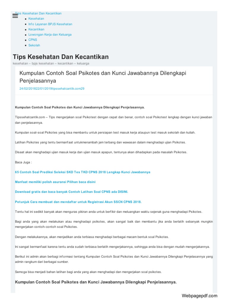 Contoh Soal Cpns 2018 Soal Psikotes Lengkap Serta Kunci