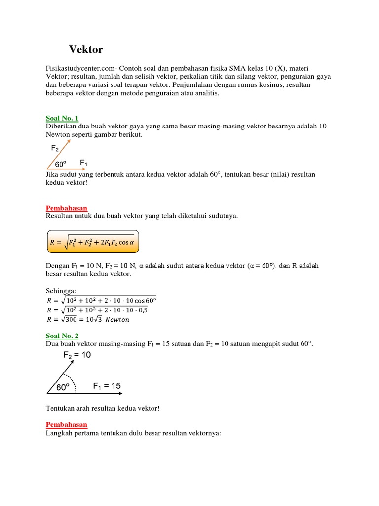 Rangkuman materi bab vektor disertai contoh soal dan jawaban dengan pembahasan lengkapnya simak disini. Contoh soal dan pembahasan fisika sma kelas 10 x materi vektor. Penjumlahan dengan rumus kosinus resultan beberapa vektor dengan metode penguraian atau analitis.