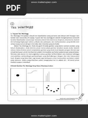Tes ini dibuat untuk mengetahui karakter seseorang dari segi imajinasi emosi dinamisme reality function dan kemampuannya dalam mengontrol sesuatu. Tes wartegg atau sering disebut dengan tes melengkapi gambar merupakan salah satu tes psikotespsikometri yang sering diujikan dalam seleksi karyawan atau tenaga kerja baru dalam perusahaan. Download contoh soal tes wartegg psikotes.