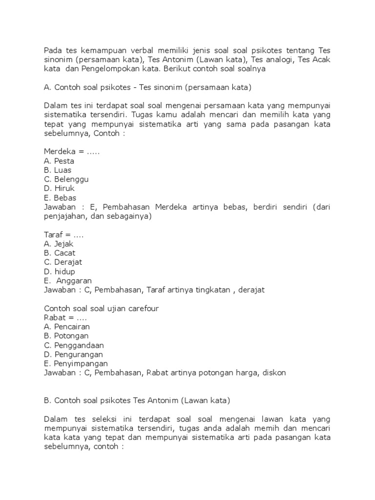 Contoh Soal Psikotes Lawan Kata Dan Jawabannya Daftar Contoh G