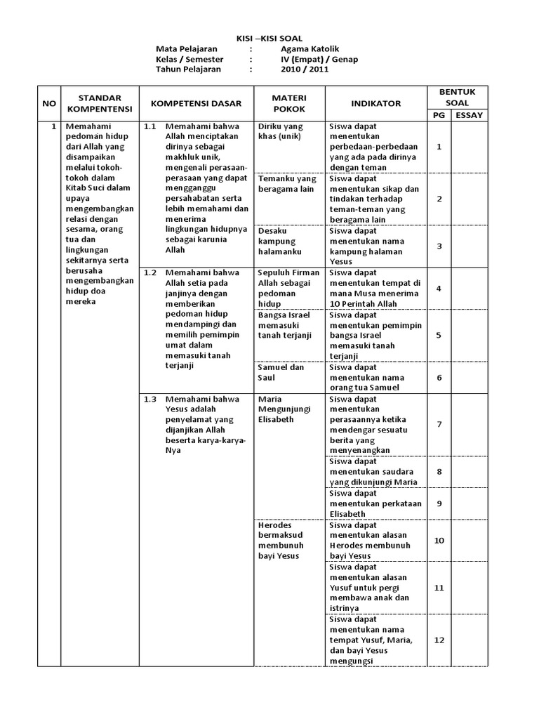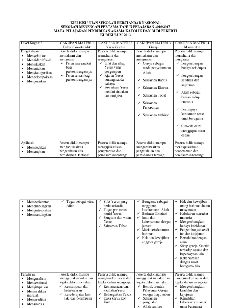 Kisi kisi usbn mata pelajaran agama katolik smp sma dan smk tahun 2018 disini. Kisi kisi usbn mata pelajaran agama katolik smp sma dan smk tahun 2018 unduh disini. Sementara itu soal soal usbn pendidikan agama katolik untuk smp dan sma mulai disusun pada tgl 27 septenber sd.