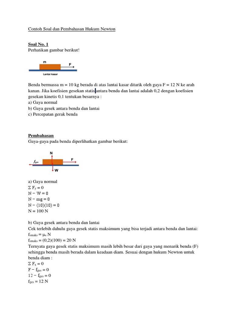 Dinamika Hukum Newton Soal Dan Pembahasannya