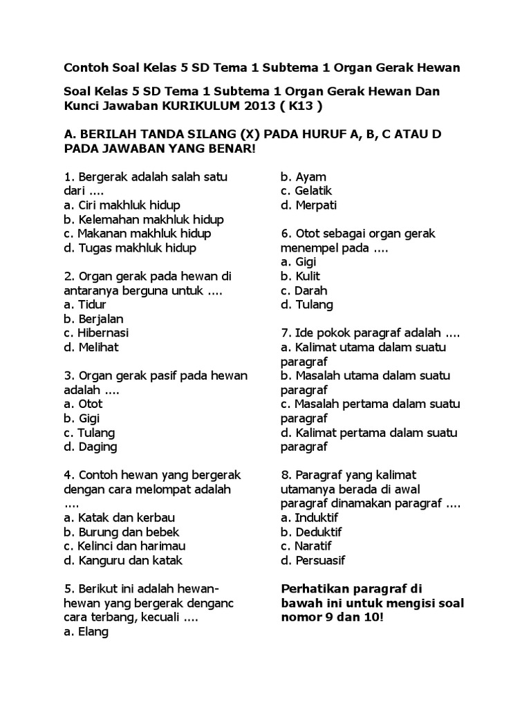 Soal Ulangan Tema 1 Kelas 5 Sd Kurikulum 2013