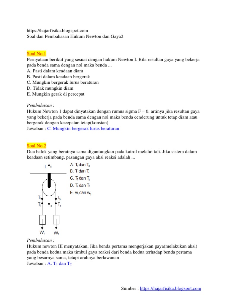 Contoh Soal Hukum Newton Beserta Pembahasannya Zip Typo