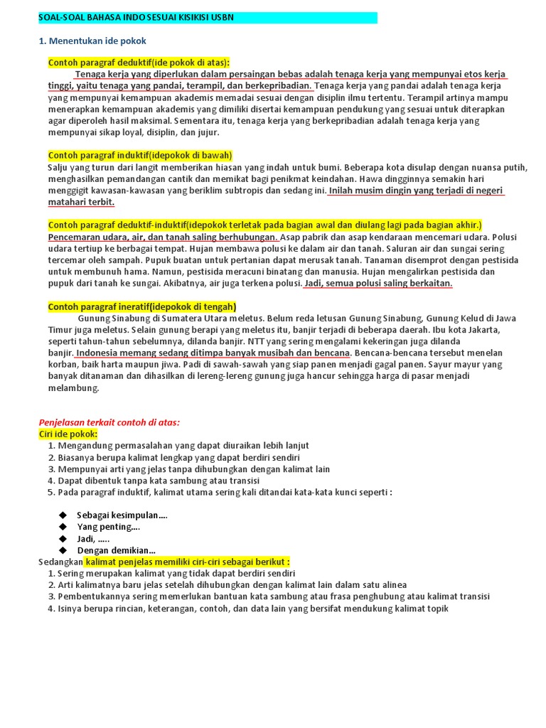 Pembahasan Soal Un 2016 2017 Bahasa Indonesia Ide Pokok