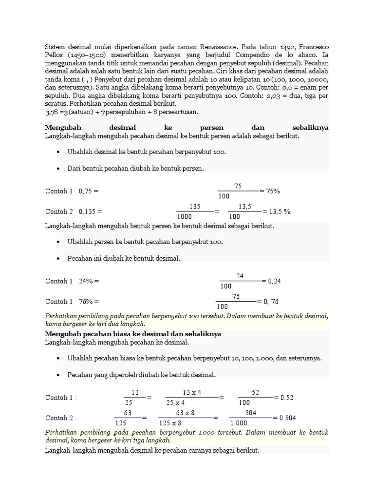 Mengubah Pecahan Biasa Menjadi Desimal Dan Sebaliknya