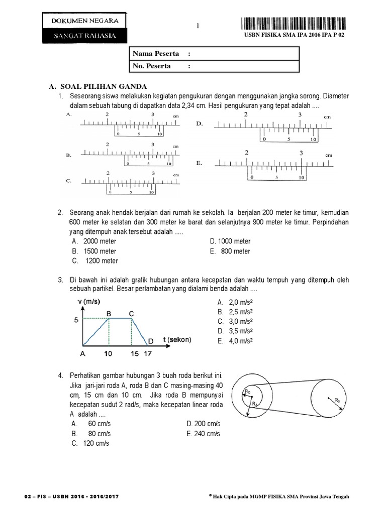 Naskah Soal Usbn Fisika Sma Kode 111 Tahun Pelajaran 2016