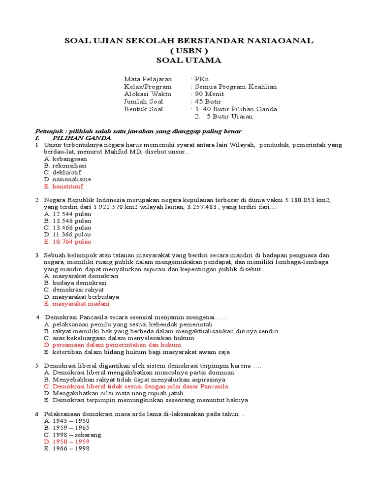Kisi kisi usbn sejarah. Dan pada bagian ke 6 materi soal pertanyaan dan jawabannya berisikan tentang kandungan masyarakat dan negara pada masa demokrasi liberal dan demokrasi terpimpin. Latihan soal dan kunci jawaban materi demokrasi pada kesempatan kali ini kami akan membagikan latihan soal atau daftar pertanyaan mata pelajaran ppkn di smama atau smpmts tentang pelaksanaan demokrasi di indonesiadalam penyusunan soal ini ada beberapa materi pokok yang digunakan kurang lebih yaitu sebagai berikut.
