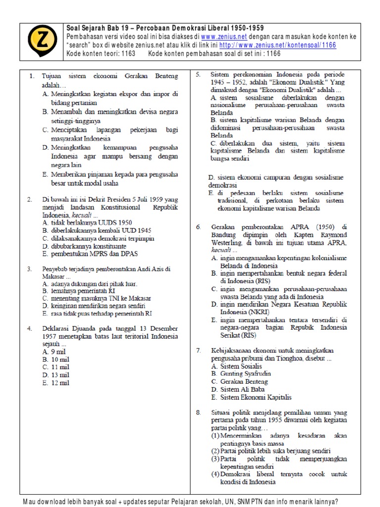 19 Soal Sejarah Bab Percobaan Demokrasi Liberal